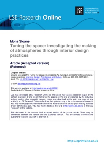 Tuning the space: investigating the making of atmospheres through interior design practices