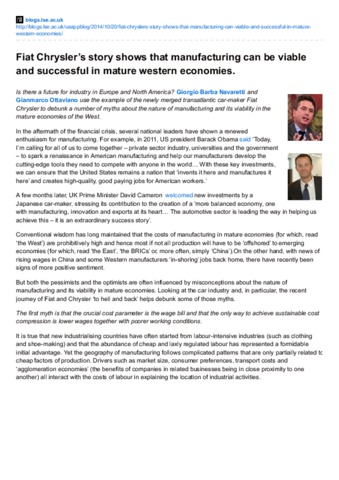 Fiat Chrysler’s story shows that manufacturing can be viableand successful in mature western economies.