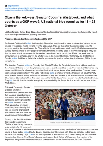 Obama the veto-less, Senator Coburn’s Wastebook, and whatcounts as a GOP wave?: US national blog round up for 18 – 24October.