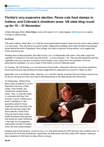 Florida’s very expensive election, pence cuts food stamps in Indiana, and Colorado’s shutdown woes: US state blog round up for 15 – 21 November.
