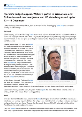 Florida’s budget surplus, Walker’s gaffes in Wisconsin, and Colorado sued over marijuana law: US state blog round up for 13 – 19 December
