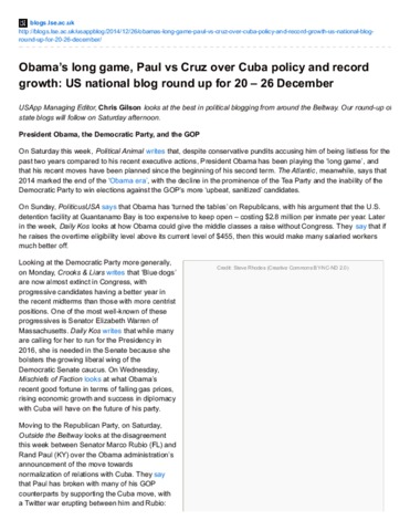 Obama’s long game, Paul vs Cruz over Cuba policy and record growth: US national blog round up for 20 – 26 December.
