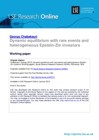 | Keywords | heterogeneous investors,Epstein-Zin preferences,rare events,equilibrium,portfolio choice |