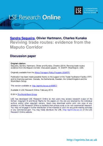 This new SSATP discussion paper reviews the experience of an apparently successful corridor to help understand optimal mix and trade-offs in reviving historical trade route. The Maputo Corridor, which had fallen in disuse during the troubled period in Mozambique, is widely regarded as one the successful corridors. It has experienced tremendous growth, attracted large industrial and transport investments, and strengthened ties between neighboring countries over its almost two decade long history since the end of the apartheid era in South Africa and the Peace Agreement in Mozambique. What makes the Maputo Corridor ideal as a source of learning lessons is that it has many contrasting facets—it is an established trade route with a development focus, as well as an hinterland corridor, a mining and resource-based corridor—whereas other corridors may have a far less diverse nature. The lessons that can be learnt from the Maputo Corridor thus have relevance for a wider variety of corridors, and can help regional economic communities, countries, corridor users and development partners to better focus their corridor strategies to maximize economic growth