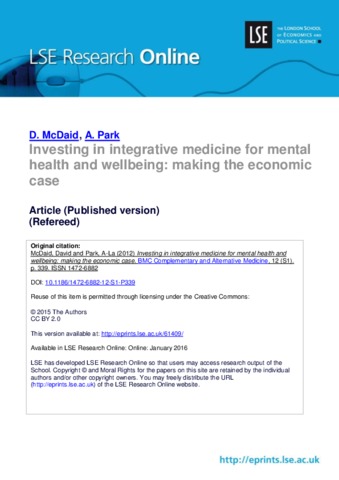 Investing in integrative medicine for mental health and wellbeing: making the economic case