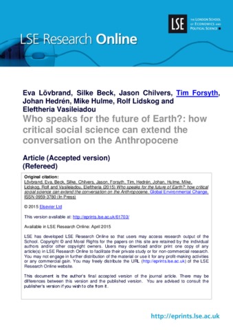 Who speaks for the future of Earth?: how critical social science can extend the conversation on the Anthropocene