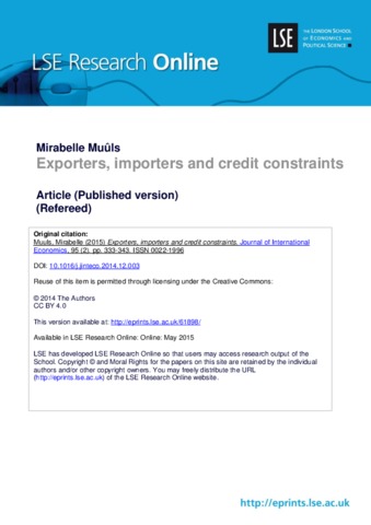 | Keywords | credit constraints,international trade,firms' heterogeneity,imports,exports,margins of trade |