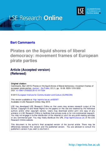 Pirates on the liquid shores of liberal democracy: movement frames of European pirate parties