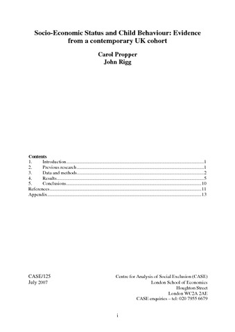 Socio-economic status and child behaviour: evidence from a contemporary UK cohort