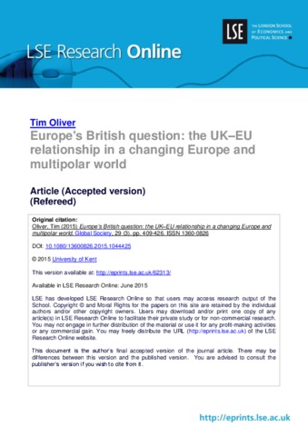 Europe's British question: the UK–EU relationship in a changing Europe and multipolar world