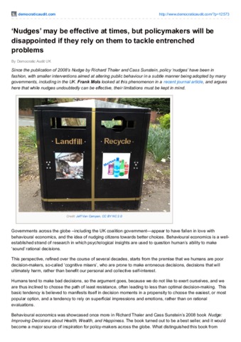 'Nudges' may be effective at times, but policymakers will be disappointed if they rely on them to tackle entrenched problems