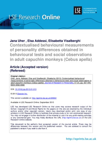 | Keywords | age differences,behavioural repertoire x environmental situations approach,capuchin monkeys,cross-situational consistency,early life experiences,individual behaviour,methodology,personality differences,sex differences,situation–behaviour-profiles |