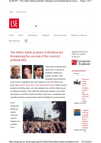 Thousands of people have taken part in a series of protests in Moldova’s capital, Chisinau, with protesters demanding the government’s resignation and early elections over a $1 billion bank fraud case. Daniel Brett, Ellie Knott and Mihai Popșoi outline why the protests are taking place, who the protesters are, and the likely impact on Moldovan politics. They write that while early elections may be the only option to reset the country’s politics, there are no certainties over what the long-term consequences will be for Moldova moving forward.