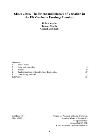 Sheer class? The extent and sources of variation in the UK graduate earnings premium.