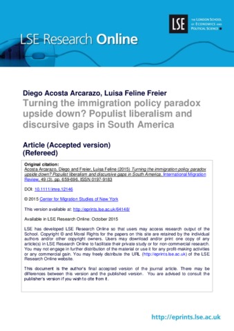 Turning the immigration policy paradox upside down? Populist liberalism and discursive gaps in South America