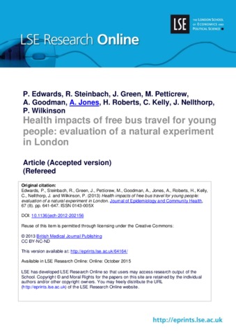 | Keywords | natural experiment,bus travel,active travel,road injuries,social inclusion |