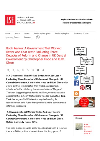 Book review: a government that worked better and costlLess? Evaluating three decades of reform and change in UK central government by Christopher Hood and Ruth Dixon