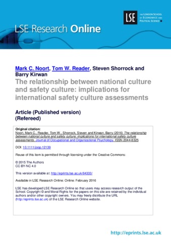 The relationship between national culture and safety culture:implications for international safety culture assessments