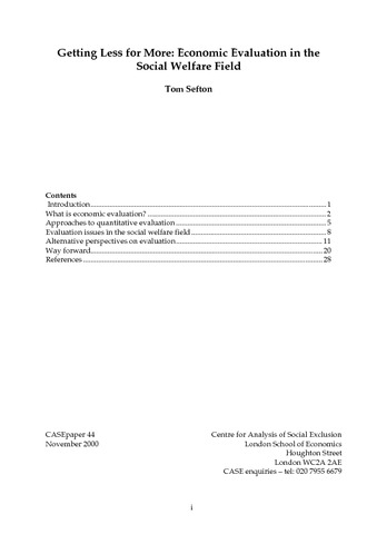 Getting less for more: economic evaluation in the social welfare field