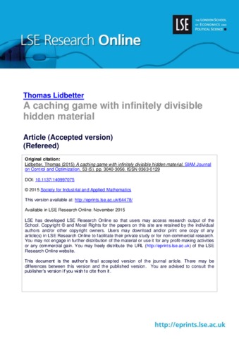 | Keywords | caching game,accumulation game,optimal strategy,search game |
