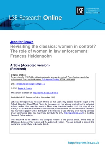 Revisiting the classics: women in control? The role of women in law enforcement: Frances Heidensohn