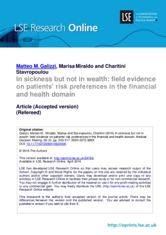 In sickness but not in wealth: field evidence on patients’ risk preferences in the financial and health domain