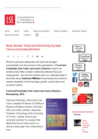 Book Review: Food and femininity by Kate Cairns and Josée Johnston.