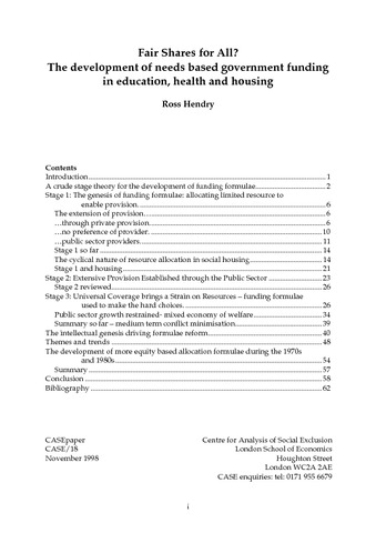 Fair shares for all? The development of needs based governmental funding in education, health and housing