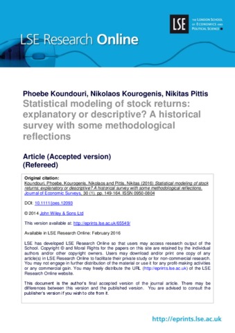 Statistical modeling of stock returns: explanatory ordescriptive? A historical survey with some methodologicalreflections.
