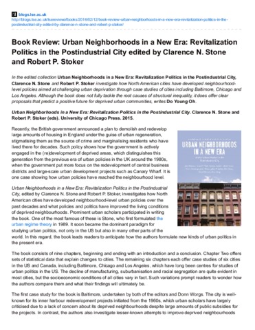 Book review: urban neighborhoods in a new era: revitalization politics in the postindustrial city edited by Clarence N. Stone and Robert P. Stoker