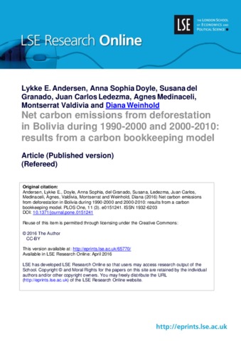 Net carbon emissions from deforestation in Bolivia during 1990-2000 and 2000-2010: results from a carbon bookkeeping model