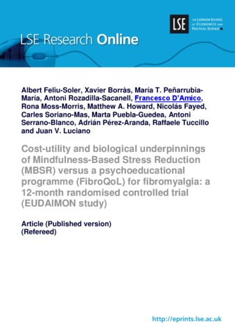 Cost-utility and biological underpinnings of Mindfulness-Based Stress Reduction (MBSR) versus a psychoeducational programme (FibroQoL) for fibromyalgia: a 12-month randomised controlled trial (EUDAIMON study)