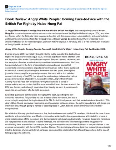 Book review: angry white people: coming face-to-face with the British far right by Hsiao-Hung Pai.