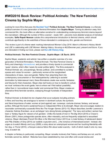 #IWD2016 Book review: political animals: the new feminist cinema by Sophie Mayer.