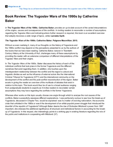 Book review: the Yugoslav wars of the 1990s by Catherine Baker