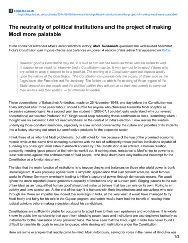 The neutrality of political institutions and the project of making Modi more palatable