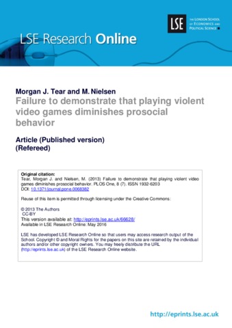 | Keywords | Video game violence,prosocial,social behaviour,behavioral priming |