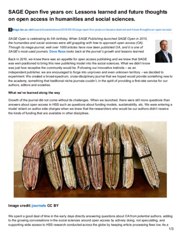 SAGE Open five years on: lessons learned and future thoughts on open access in humanities and social sciences.