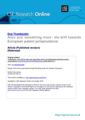 Alice and ‘something more’: the drift towards European patent jurisprudence
