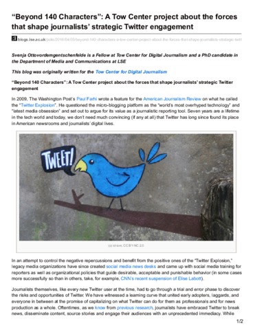 Beyond 140 characters: a Tow Center project about the forces that shape journalists’ strategic Twitter engagement
