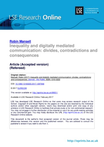 Inequality and digitally mediated communication: divides, contradictions and consequences