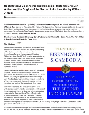 Book review: Eisenhower and Cambodia: diplomacy, covert action and the origins of the second Indochina war by William J. Rust