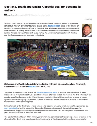 Scotland, Brexit and Spain: A special deal for Scotland is unlikely.