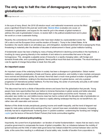 The only way to halt the rise of demagoguery may be to reform globalization