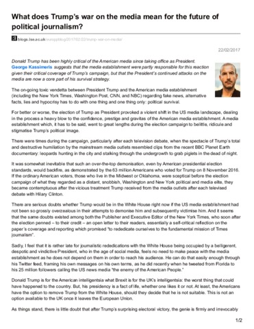 Donald Trump has been highly critical of the American media since taking office as President. George Kassimeris suggests that the media establishment were partly responsible for this reaction given their critical coverage of Trump’s campaign, but that the President’s continued attacks on the media are now a core part of his survival strategy.