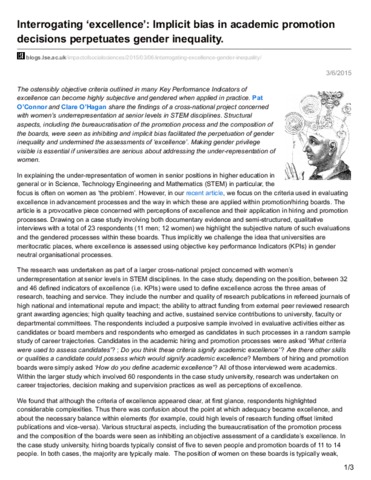 Interrogating ‘excellence’: Implicit bias in academic promotion decisions perpetuates gender inequality.