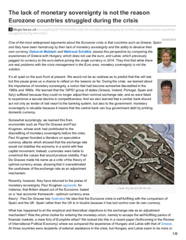 The lack of monetary sovereignty is not the reason Eurozone countries struggled during the crisis.