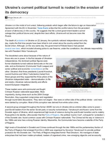 Ukraine is in the midst of civil unrest, following protests which began after the failure to sign an Association Agreement with the EU in November. Taras Kuzio writes that the conflict stems from the persistent erosion of democracy in the country. He suggests that the current government leaders cannot salvage their political futures and, despite their best efforts, Ukraine will not become more like Russia.