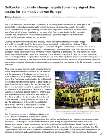 Setbacks in climate change negotiations may signal dire straits for ‘normative power Europe’