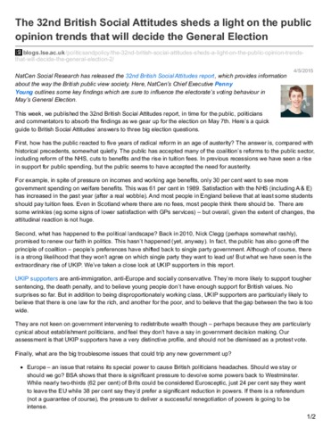The 32nd British Social Attitudes sheds a light on the public opinion trends that will decide the General Election.